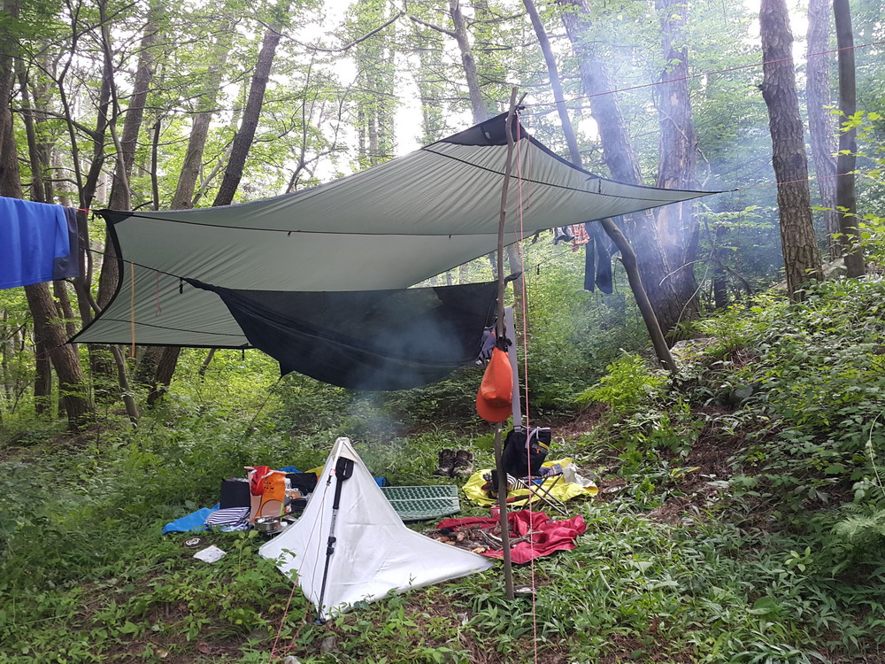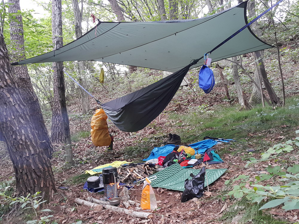 가을엔 타프대신 나름대로 개조한 쉘터속에 해먹을 넣어 밤을 보낸다ㅎㅎㅎ (2019-10-27)
