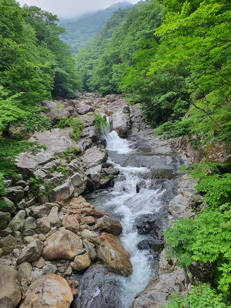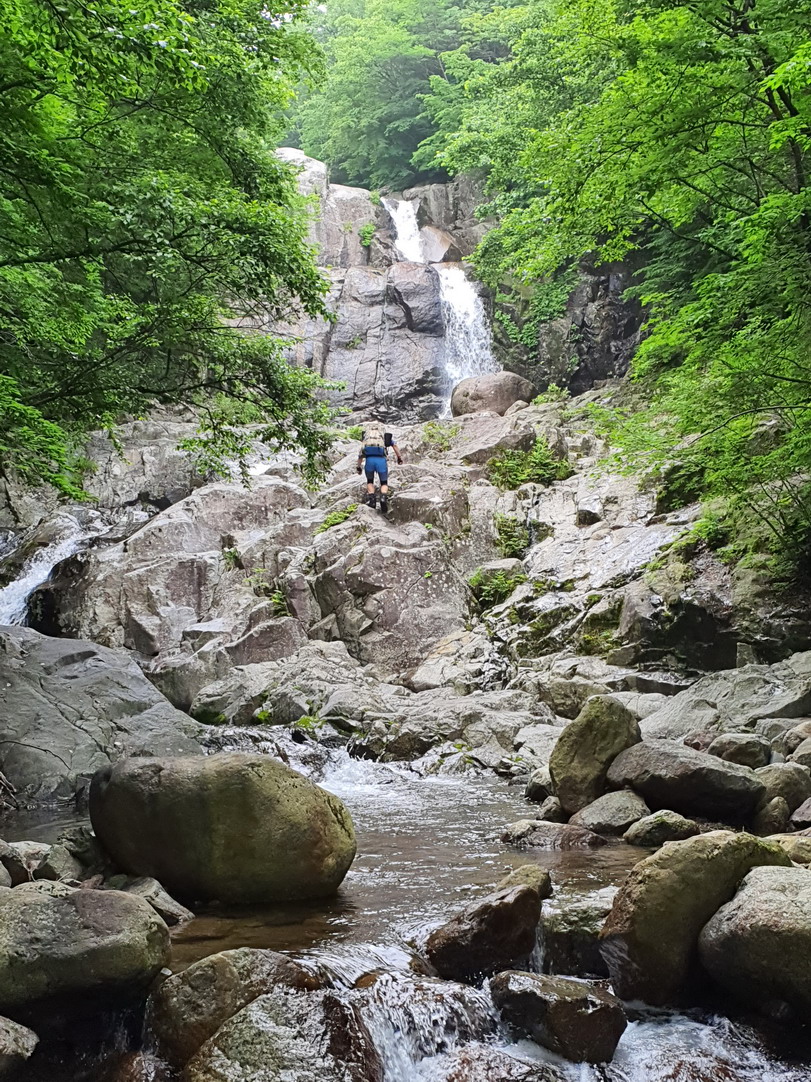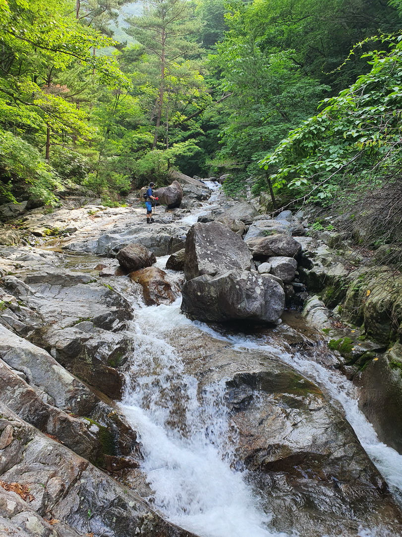 ▼ 천령폭포를 알현하기 위한 힘찬 계곡치기 분위기~~!!!