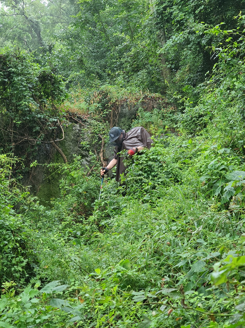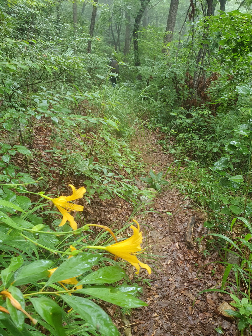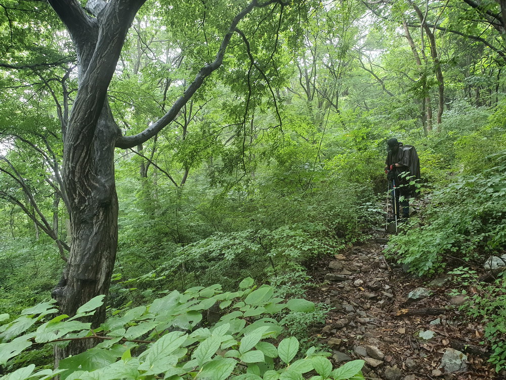 ▼ 약한비가 내리는 속에 좀 음산한 등산로를 따라 웅동골로 스며들고 있는 중