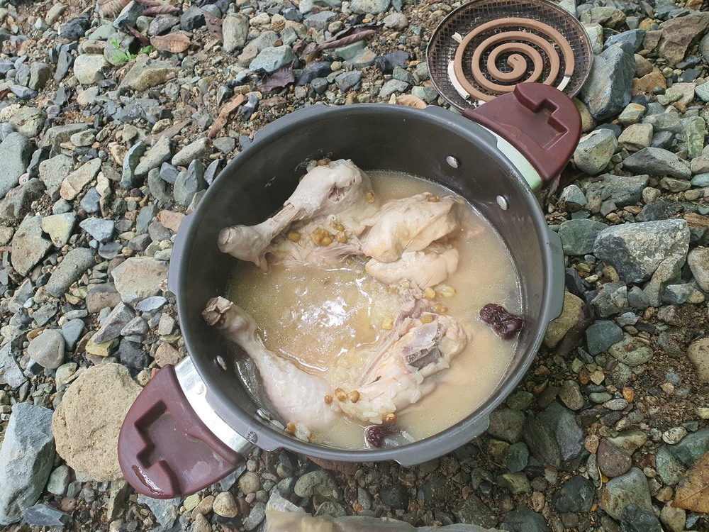 ▼ 이건 saiba 산님이 준비한 므그븐 가정용 압력밥솥으로 백숙을 끓이고 있는 중