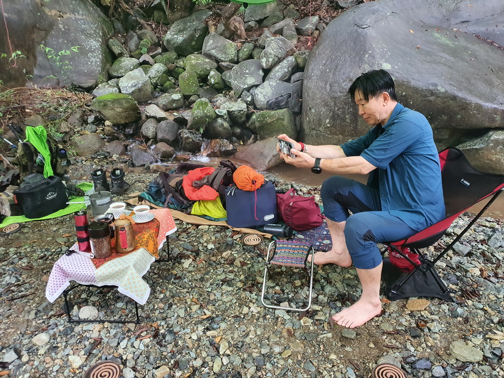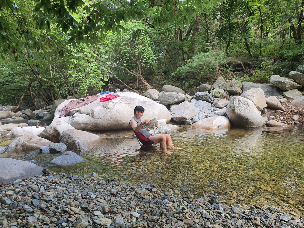 ▼ 카모님께선 일광욕을 즐기면서 계곡속에 의자를 놓고 피서를 즐기고 있는 중ㅎㅎㅎ